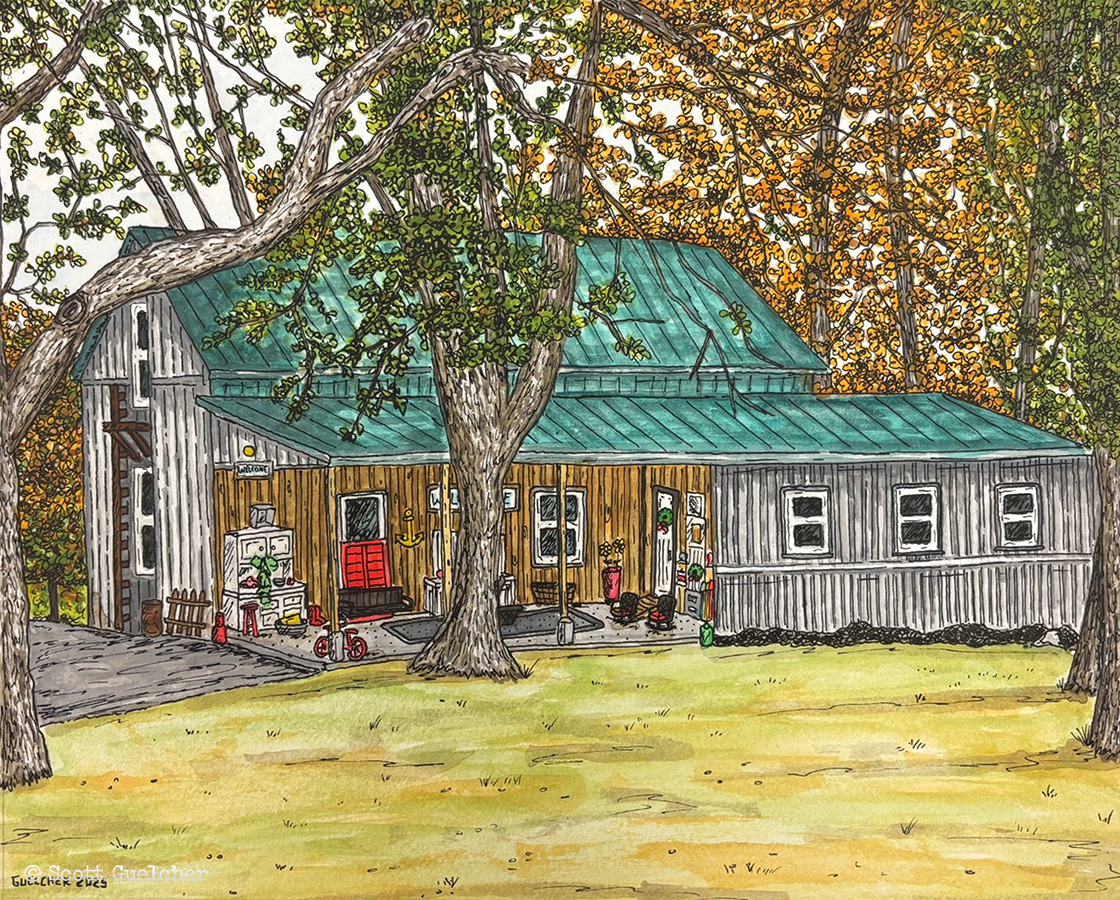 The latest commissions from Scott Guelcher. Three watercolor paintings of the same house in La Grange, Kentucky. One painting is 11″ X 14″ and the other two paintings are 8″ X 10″. If interested in a commissioned piece of artwork please contact me.